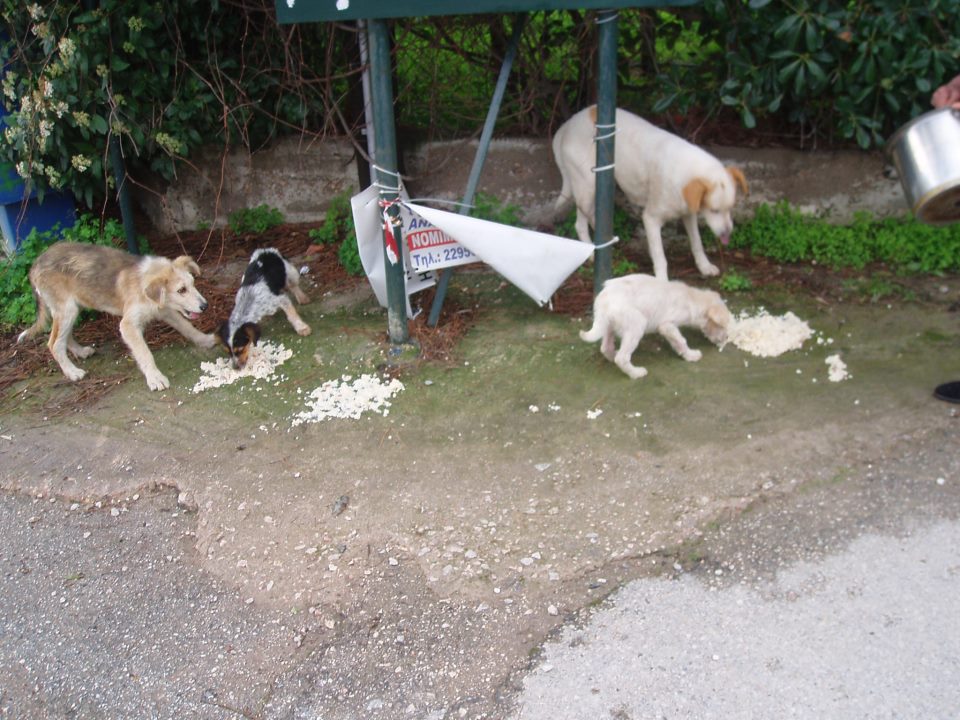 Ώρα ... φαγητού για τα αδέσποτα στον οικισμό "Αγκώνα" στον Κάλαμο.